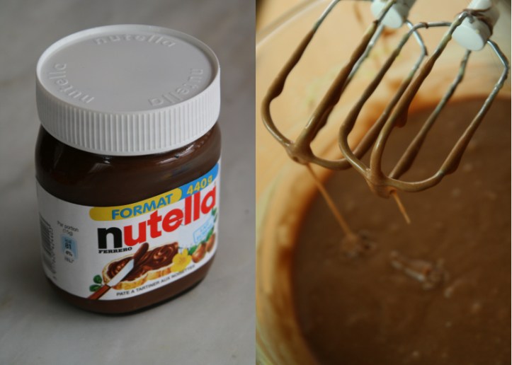 - Battre les œufs avec le sucre jusqu’à ce que le mélange blanchisse. Ajouter progressivement la farine, le beurre, le lait et 1 grosse cuillère de Nutella. Bien mélanger.