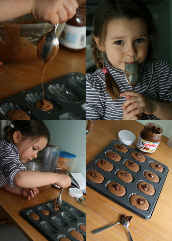 Si vous souhaitez que vos madeleines prennent une jolie forme bombée pensez à positionner votre touche de Nutella dans la partie la moins creuse du moule.