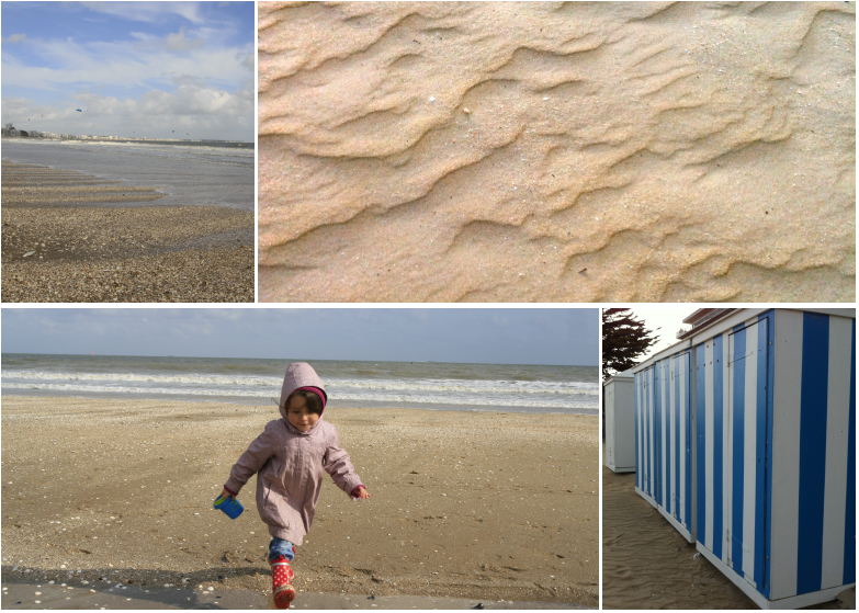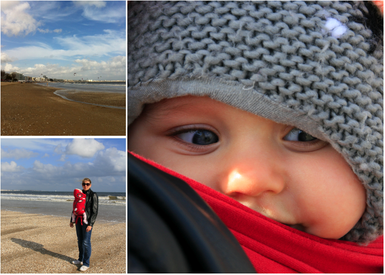 La météo n’étant pas des plus clémente, nous avons tout d’abord profité des quelques rares éclaircies pour aller jouer sur la plage de la Baule-les-pins. C’était l’occasion pour nous de faire découvrir la mer à notre petite choubidou. Bien Emmitouflée dans son écharpe de portage babymoov et équipée de ses petites jambières, elle observait sa grande sœur faire des bons dans tous les sens avec beaucoup d’intérêt.