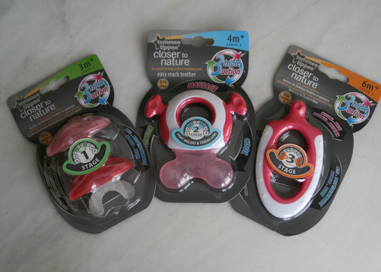– Pour Céline et son bout’choux de 11 mois un hoche de dentition Tommee Tippee Stage 3 bleu.