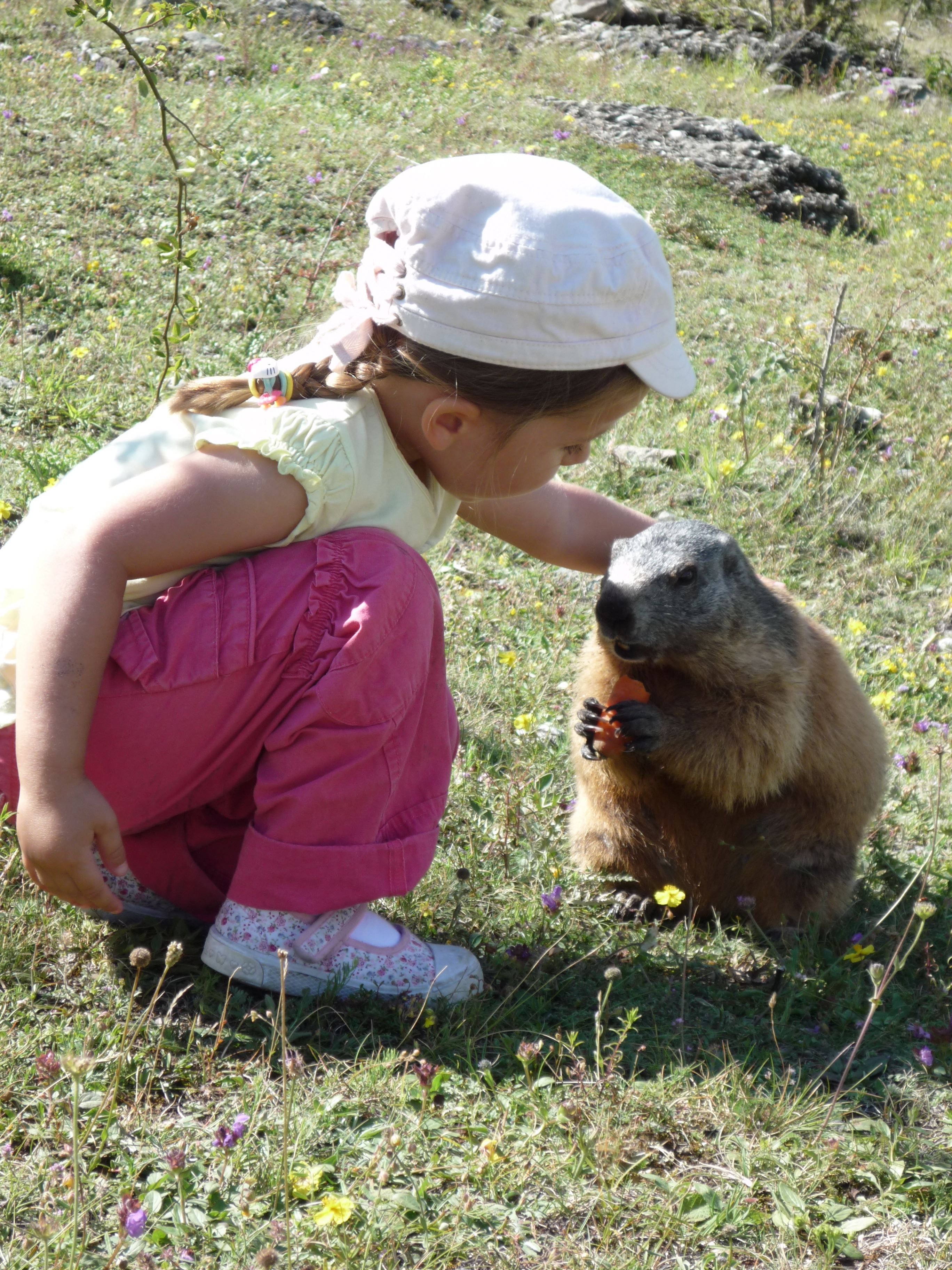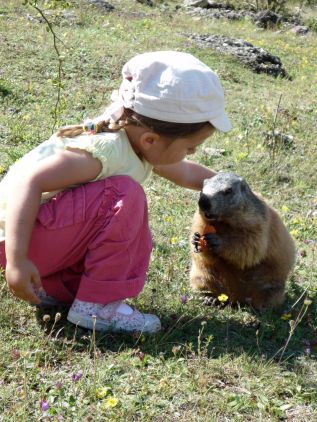 Il existe un lieu unique que l’on appelle le sentier des marmottes entre le chef lieu d’Eygliers et Mont-Dauphin où il est très facile d’observer mais aussi d’approcher des marmottes. Cela fait maintenant 5 ou 6 ans que nous allons leur rendre une petite visite en été. Maintenant ce sont nos puces qui en profite le plus.