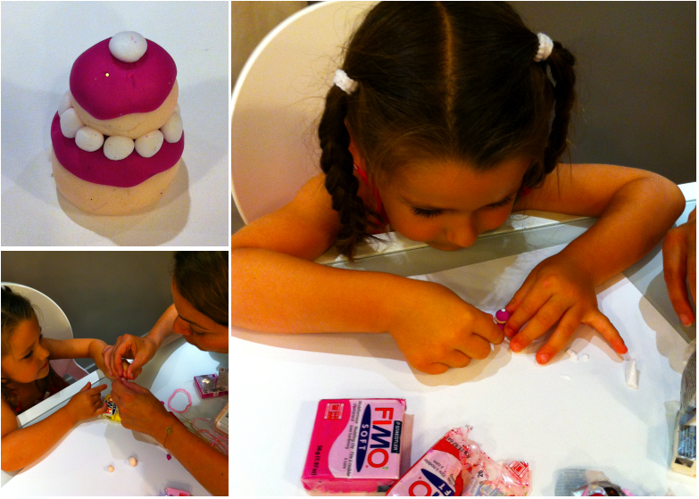 En cherchant de nouveaux ateliers pour ma chouchou de 4 ans ½, j’ai découvert l’existence des ateliers Modelage/Montage sur le site d’Une mère, une fille à Paris. L’idée de lui faire réaliser des gâteaux qui ne se mangent pas m’a beaucoup plu et j’ai voulu tester.