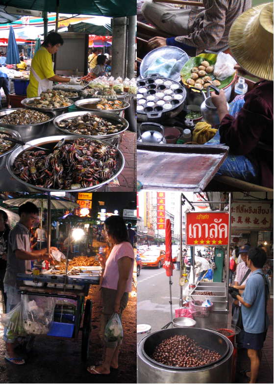 Marchés thaïlandais : crustacés, petits beignets, insectes et châtaignes locales