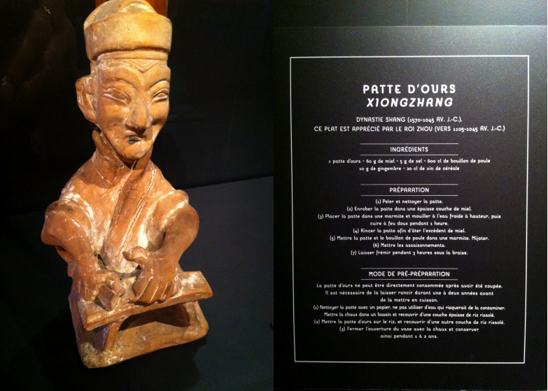Ce que j’ai le plus apprécié dans cette exposition c’est la mise en scène très réussie car ce n’est pas évident de rendre une expo remplie de poteries, porcelaine et autres ustensiles de cuisine intéressante. J’ai beaucoup aimé l’idée de présenter des recettes un brin farfelue comme celle de la Patte d’ours.