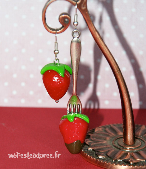 Jolies boucles d’oreilles fraises et chocolat – Ouh la la !