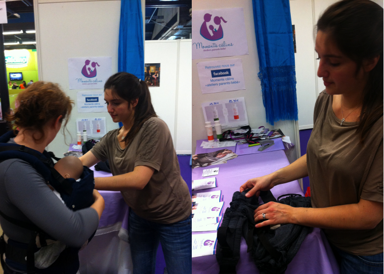 1. J’ai beaucoup apprécié de découvrir ce salon avec une amie experte dans ce domaine. J’ai aimé pouvoir découvrir les dernières nouveautés et surtout pouvoir tester les produits et échanger avec leurs créateurs. J’ai ainsi pu tester les écharpes de portage et comprendre comment les mettre :-), j’ai apprécié les premiers cours de premiers secours avec la Croix Rouge.