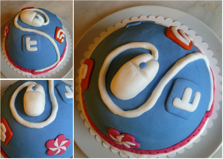 Aujourd’hui, dans le cadre du spot des e-fluent Mums, je participe à un concours de cake design. Le thème proposé est : la blogosphère.