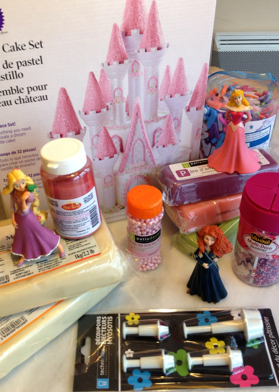 Dans ce gâteau château de la belle au bois dormant, la grosse difficulté réside dans la réalisation des tourelles fines et élancées. Heureusement pour moi, la marque américaine Wilton propose un kit complet.