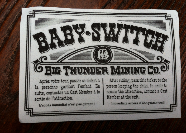 Pour que les parents de très jeunes enfants puissent faire la même attraction sans perdre de temps et donc éviter une deuxième fois une attente trop longue, le premier à passer peut demander un ticket de Baby Switch à la sortie de l’attraction. Le second pourra ainsi passer par la sortie de l’attraction en question et profiter également du manège sans perde de temps. C’est un système maintenant bien rodé qui fonctionne parfaitement.