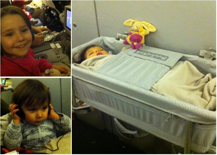 Au sol comme dans l’avion l’équipage était au petit soin avec les filles. Nos places avaient déjà été réservées longtemps à l’avance via le service bébé de la compagnie donc pas de soucis à ce niveau. Nos puces ont même reçu des petits cadeaux (jeux, Doudou, bavoir) et notre bébé a pu profiter du service de lit bébé.