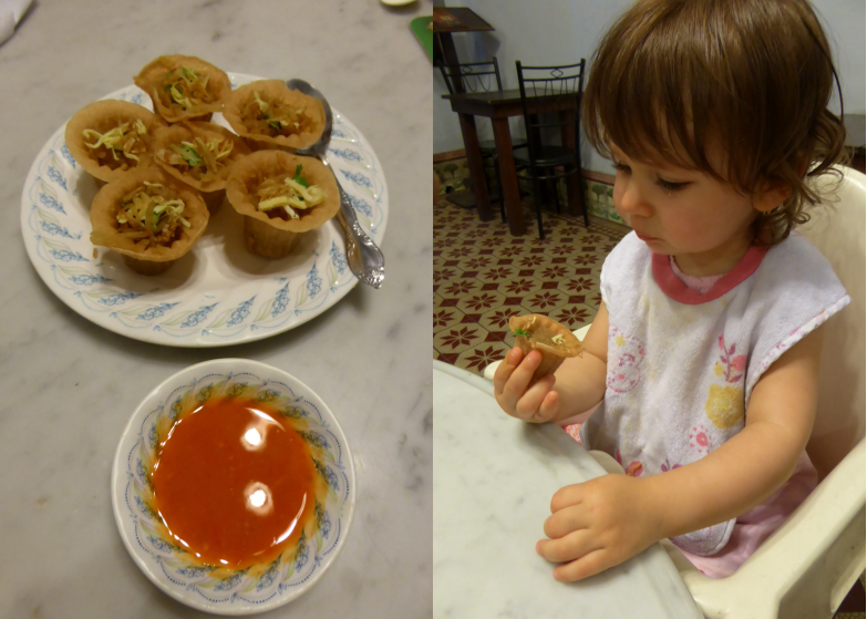 Bébé a été initié à la cuisine locale comme à Melaka avec les Tai Pee (succès mitigé).