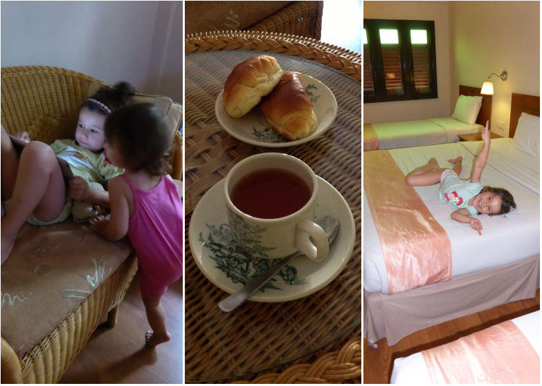 Cette chambre est la plus spacieuse dans laquelle nous avons pu séjourner lors de ce voyage. Nos puces ont pu courir sans déranger les voisins du dessous puisque elle est située au dessus du bar donnant dans le jardin.
