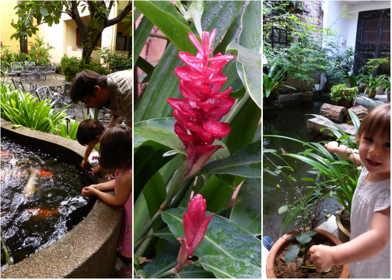C’est un des gros plus de cet hôtel. Les plantes, les arbres poussent dans tous les recoins. Pendant que les puces donnaient à manger aux poissons du bassin à la cascade, nous avons profité des cocktails de jus de fruits pressés proposés au bar donnant dans le jardin principal.