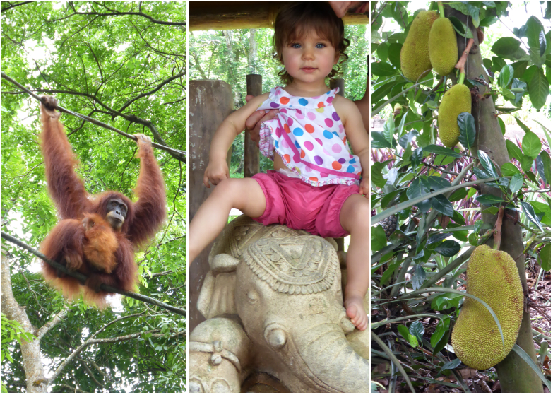 Petits plus : les sculptures d’animaux géants sur lesquelles les enfants peuvent poser pour une photo souvenir, le jardin de fruits et de fleurs pour découvrir les plantes natives de la région et surtout les oran outans de Bornéo qui bénéficient d’espaces dans les arbres coù on peut les observer très facilement.