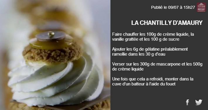 Je ne pense pas être la seule à avoir craqué sur cette chantilly au mascarpone. Une vrai tuerie dont j’ai trouvé la recette sur le facebook de l’émission. Maintenant, il n’y a plus qu’à essayé !