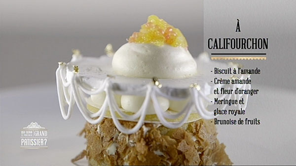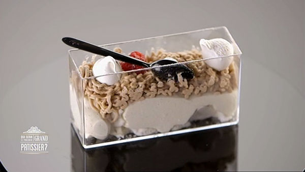 Une épreuve avec l’un de mes pâtissiers préférés. C’est assez agréable de voir Monsieur Conticini transmettre son savoir. Lors de cette épreuve, j’ai été bluffée par le travail de Yann avec sa création intitulée A califourchon. Le travail avec le glaçage royal est très fin comme de la dentelle. Le résultat est visuellement très beau.