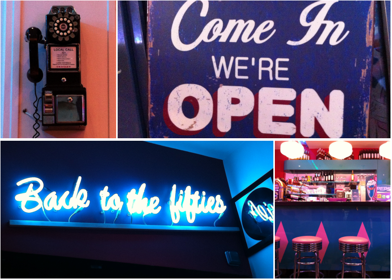 Nous avons adoré l’ambiance du lieu très 60’s avec son jukebox, ses néons, le choix des couleurs un peu flashy (rose et bleu) et toutes ses affiches et pancartes américaines. La musique diffusée vous met dans l’ambiance dès que vous franchissez le pas de la porte. J’ai retrouvé ici l’ambiance du Diner dans lequel j’avais déjeuné à New York quelques années plus tôt. Un vrai bonheur.