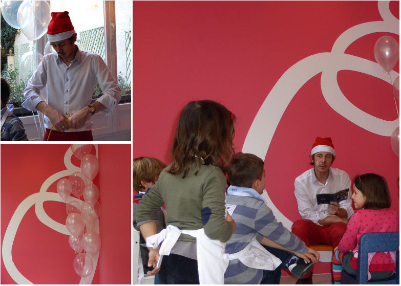 Chacun repart avec son ballon sculpté. Sabrina remet à chaque enfant un joli sac dans lequel elle dépose les précieux biscuits de Noël décorés. Elle glisse également quelques caramels.