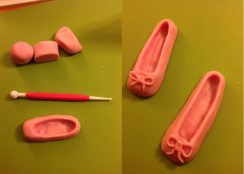 J’ai pris des modèles de ballerines pour sculpter et creuser la chaussure comme une vraie. C’est une étape qui demande de la délicatesse alors choisissez un moment calme pour le faire.