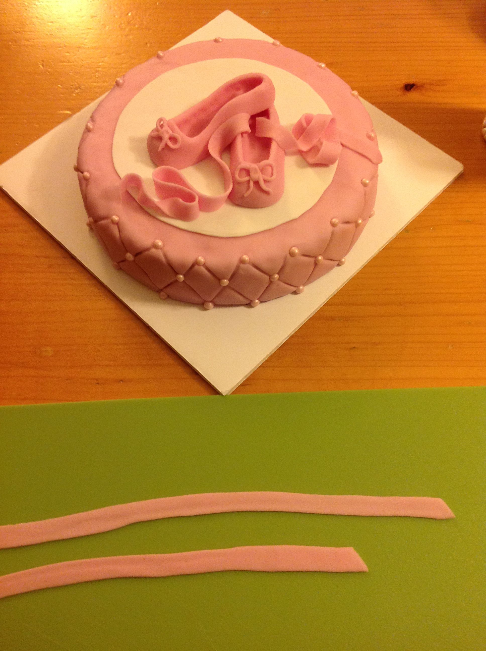 Cette semaine, vous avez pu découvrir comment préparer ce gâteau et réaliser les chaussons de danse. Voici aujourd’hui comment le terminer en ajoutant les derniers éléments de décoration qui sont le napperon et les rubans.