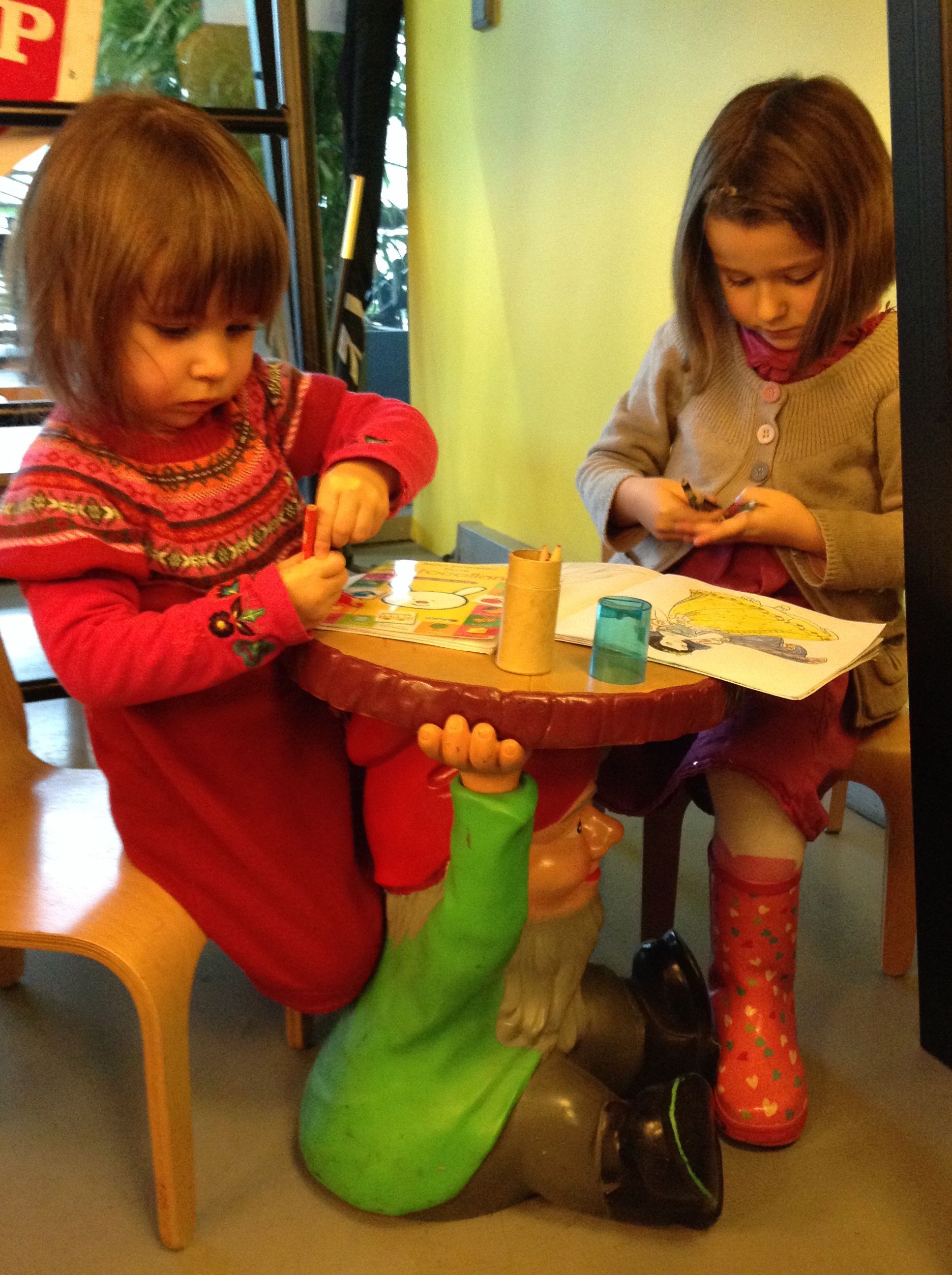 Nos puces ont rapidement investi le petit coin aménagé de petites chaises et la petite table décorée d’un nain de jardin.