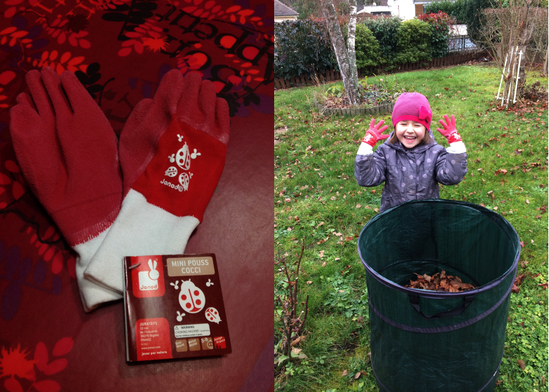 Lors de notre dernier séjour en Auvergne ma puce a reçu un joli cadeau pour jardiner comme les grands avec ses petits gants Janod. Ces petits accessoires sont vraiment parfaits pour gratter dans le jardin tout l’après-midi.