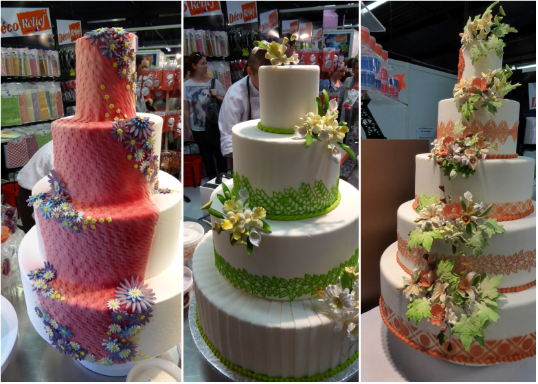 Au premier salon Sugar Paris, il y avait beaucoup de pâte à sucre avec des présentations de gâteaux plus spectaculaires les uns que les autres mais pas que. Il y avait aussi des bonbons, des wedding cakes (gâteau de mariage à l’américaine), de la décoration de table, de l’outillage et des accessoires et beaucoup de matière première.