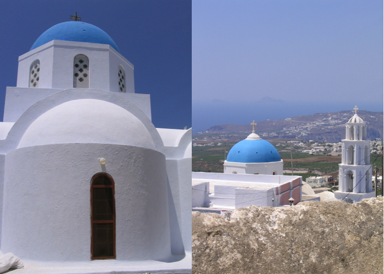 C’est un village situé à quelques kilomètres au sud de l’île. On peut y découvrir de jolies maisons aux murs blancs et des belles églises surmontées de dômes bleus.