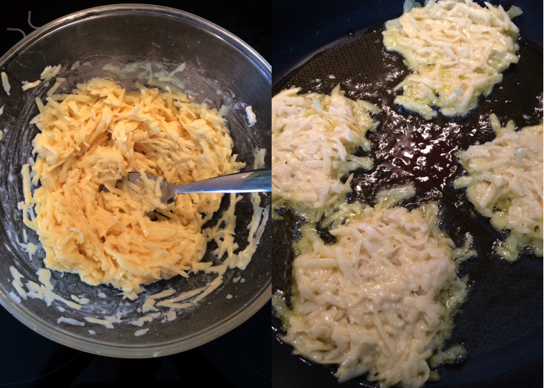 Donc pas de farine et pas d’œufs et on râpe sur une râpe à main (tout fin) pas comme des carottes.