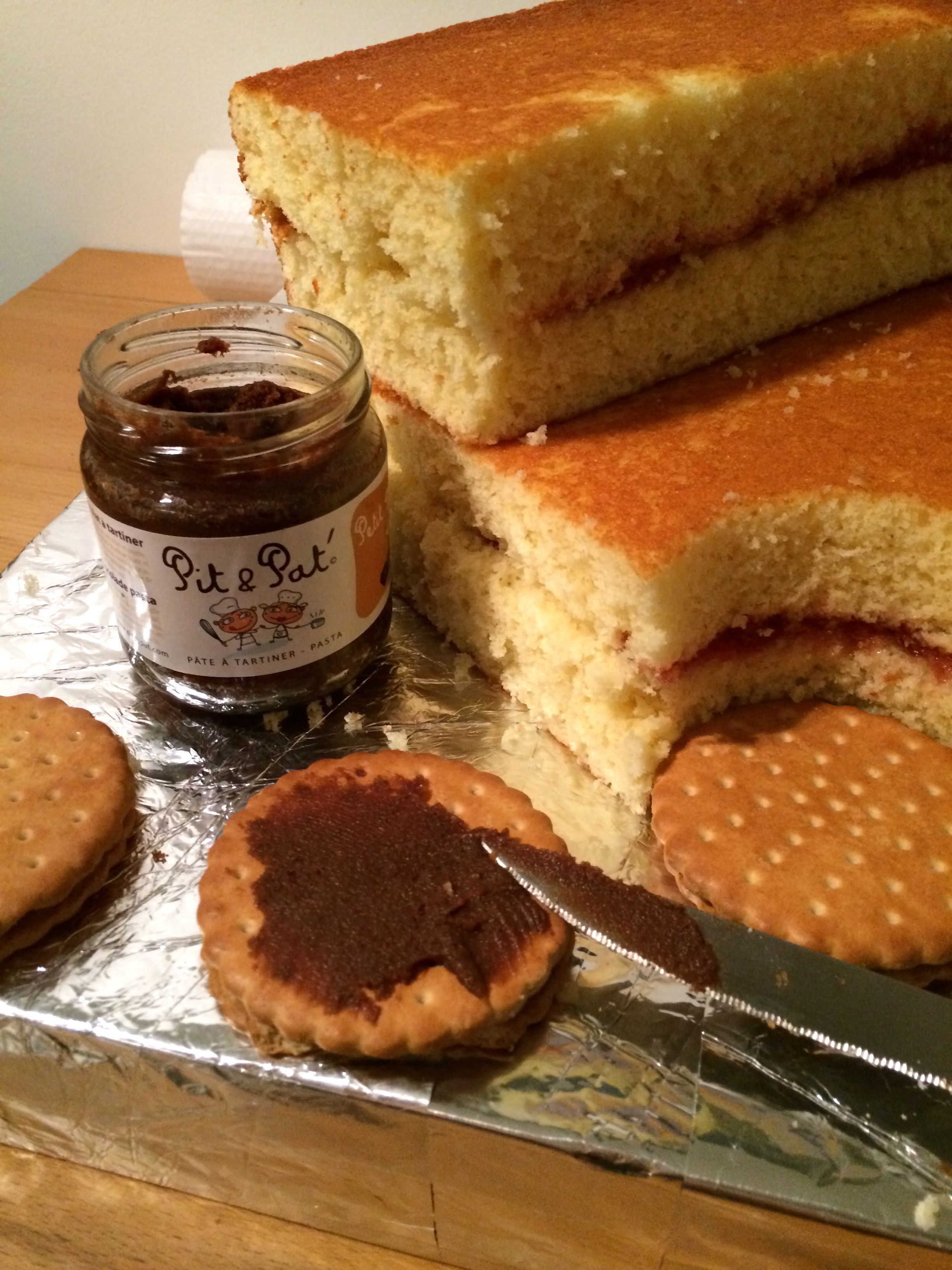 Si j’avais envisagé de confectionner tous les éléments de ce gâteau moi-même, je me suis vite ravisée par manque de temps. J’ai finalement opté pour un mélange de gâteau fait maison et de biscuits achetés dans le commerce.