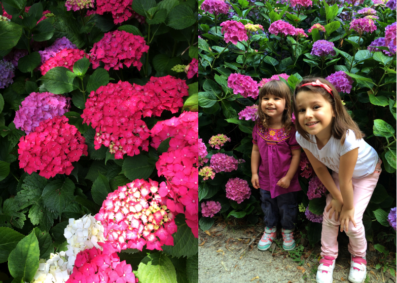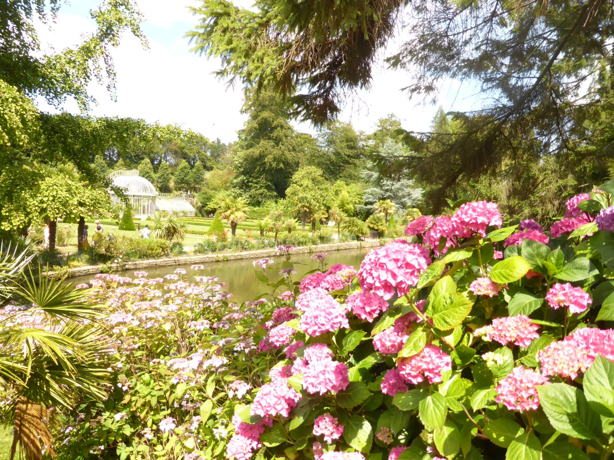 Les espaces sont harmonieusement organisés, plantés de nombreuses fleurs dont de magnifiques massifs d’hortensias.