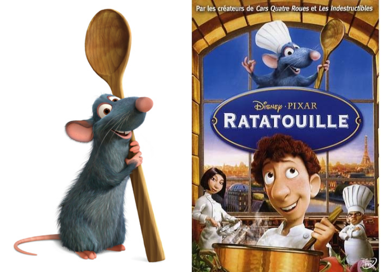 Synopsis : Rémy est un jeune rat qui rêve de devenir un grand chef français. Ni l’opposition de sa famille, ni le fait d’être un rongeur dans une profession qui les déteste ne le démotivent. Rémy est prêt à tout pour vivre sa passion de la cuisine… et le fait d’habiter dans les égouts du restaurant ultra coté de la star des fourneaux, Auguste Gusteau, va lui en donner l’occasion ! Malgré le danger et les pièges, la tentation est grande de s’aventurer dans cet univers interdit. Ecartelé entre son rêve et sa condition, Rémy va découvrir le vrai sens de l’aventure, de l’amitié, de la famille… et comprendre qu’il doit trouver le courage d’être ce qu’il est : un rat qui veut être un grand chef…