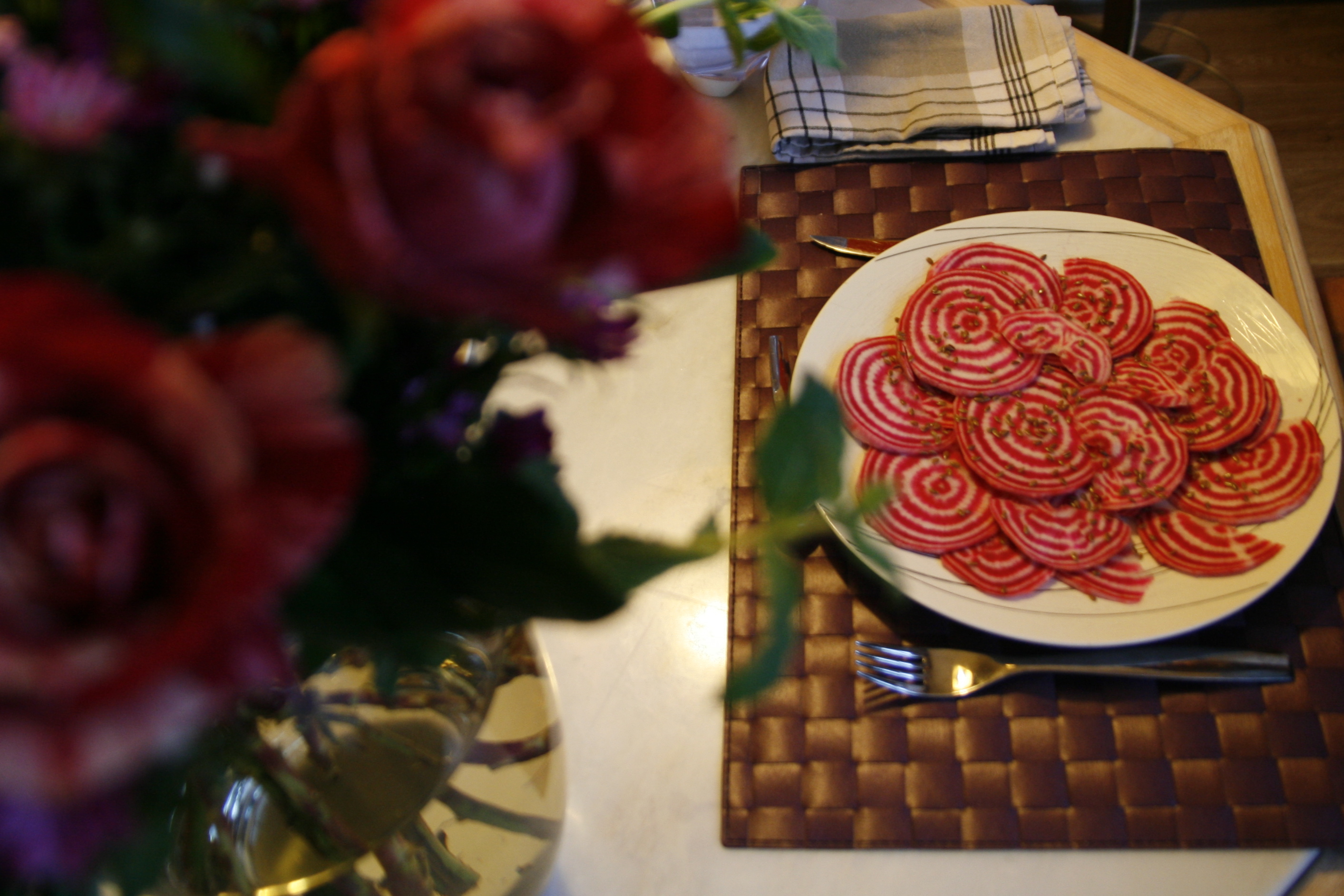 Carpaccio de betterave chioggia aux graines de lin