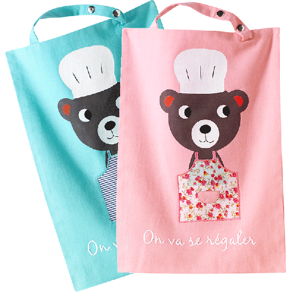 Un grand bavoir qui se ferme par bouton pression au cou et s’attache à l’aide de lanières dans le dos afin de proposer une protection optimale. Une face en coton toute douce et un autre imperméabilisée pour se protéger de toutes les projections.