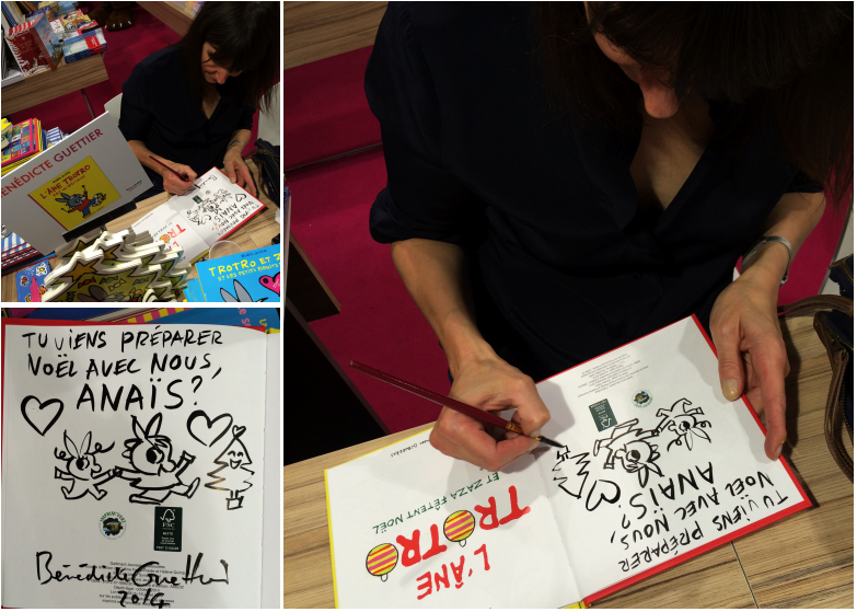 On ne présente plus Bénédicte Guettier et l’incontournable âne Trotro qui fait le bonheur des tous petits et en particulier de ma chouquette pour laquelle nous avons demandé une petite dédicace.