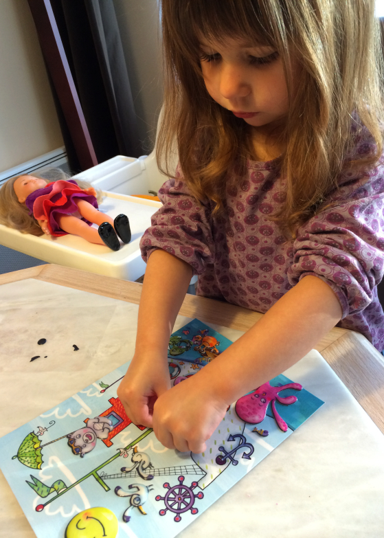 C’est une activité qui peut rapidement s’organiser à la maison mais aussi pendant un voyage puisque les gommettes sont collées sur un support souple facilement transportable. Les plateaux sont plutôt rigides donc ont peu facilement les manier un peu partout. La boite est légère mais de bonne qualité donc on peut la glisser dans un sac de voyage. Je pense d’ailleurs en emporter pour notre prochain voyage aux USA.