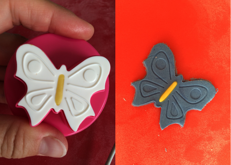 J’ai choisi un emporte-pièce à poussoir de chez ScrapCooking pour ce papillon et les étoiles. Ils sont très simples à utiliser.