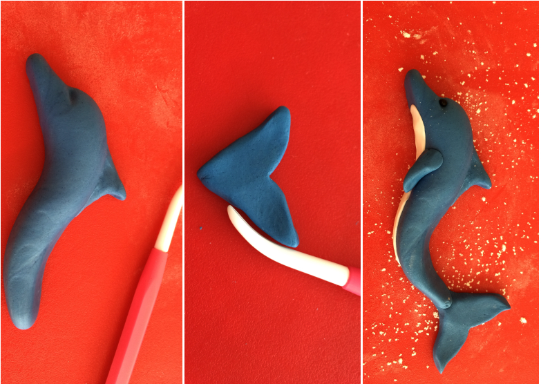 Pour cet animal, j’ai consulté plusieurs tutoriels dédié à la pâte FIMO qui utilise les mêmes techniques que pour la pâte à sucre. J’ai tout d’abord formé le corps puis j’ai ajouté le ventre blanc et la queue. Le résultat est assez sympa.