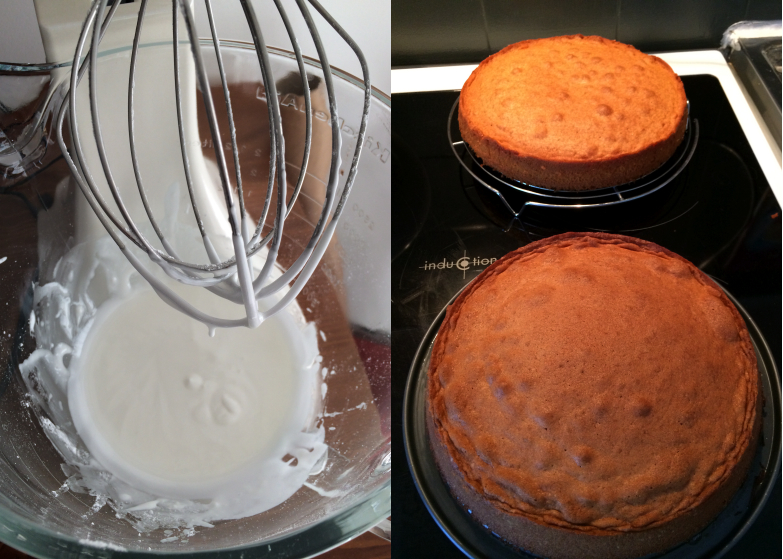 Pour ma base de gâteau, j’ai utilisé une recette de gâteau au yaourt. J’ai fait cuir deux gâteaux dans un moule à manquer de 22 centimètres de diamètre. J’ai également préparé du glaçage royal (200 grammes de sucre glace + un blanc d’œuf + quelques gouttes de jus de citron).