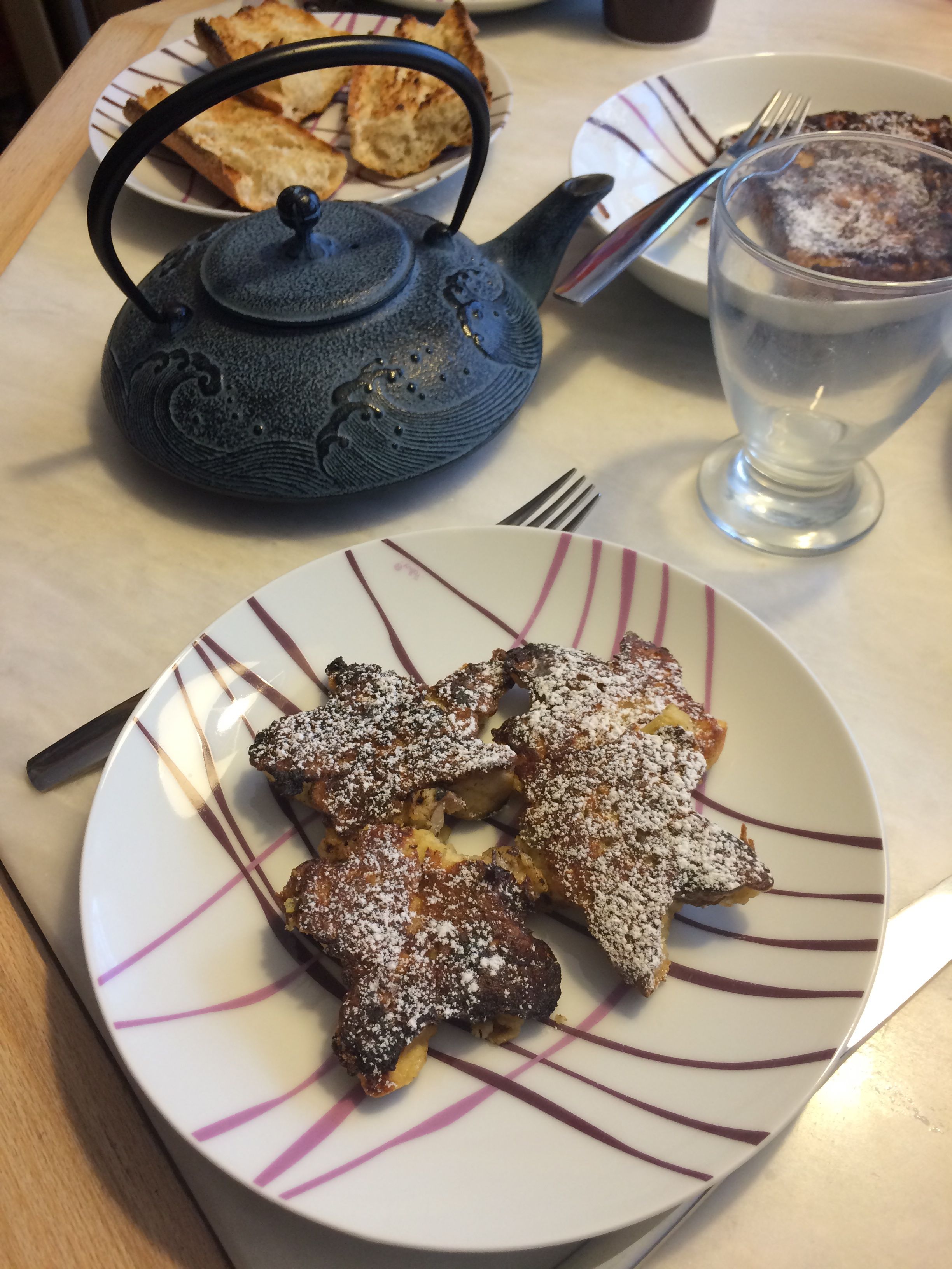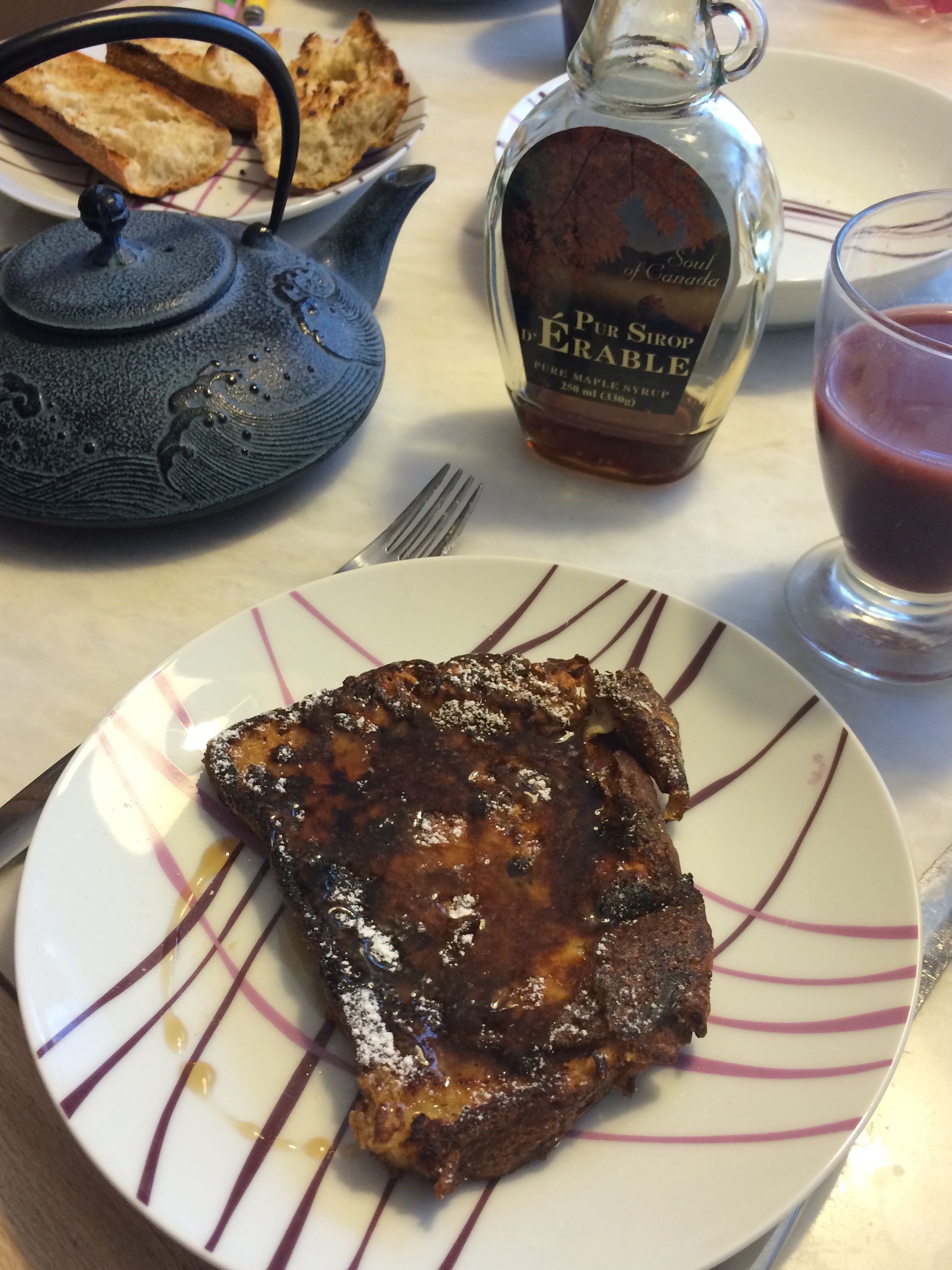 Nous avons dégusté ce pain perdu avec un thé comme le thé noir N°25 du Palais des thés que j’ai reçu en cadeau avec ma théière Hokusai à Noël. C’est un thé noir du Sri Lanka aux notes d’agrumes, de rose, d’amande et d’épices.
