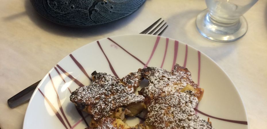 Dans une assiette creuse, j’ai versé un peu de lait frais. Dans une deuxième une assiette creuse, j’ai battu un œuf auquel j’ai ajouté une demi cuillère de cannelle en poudre. J’ai tout d’abord trempé mes morceaux de pain dans le lait puis dans l’œuf à la cannelle avant de les faire cuire et dorer sur les deux faces dans une poêle avec une noisette de beurre.