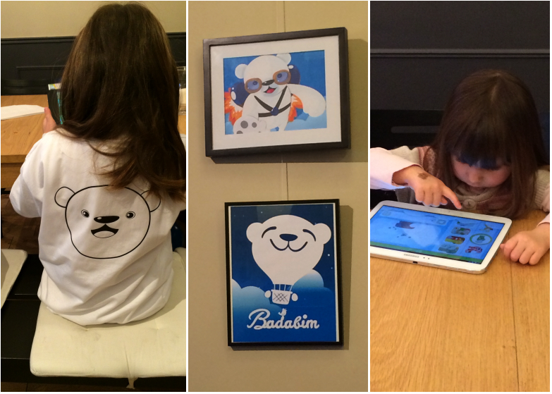 Elle est très à l’aise avec la tablette et n’a pas eu besoin de beaucoup d’explications pour apprécier Badabim. Ce qu’elle a apprécié le plus ce sont les dessins animés.