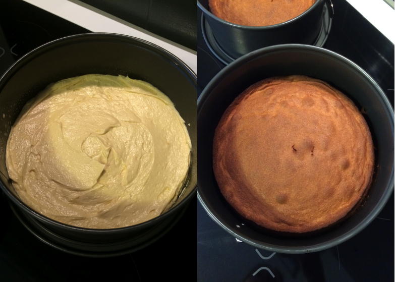 J’ai choisi une recette de Victoria sponge cake assez simple que j’ai dénichée sur le blog Les délices de Mimm.