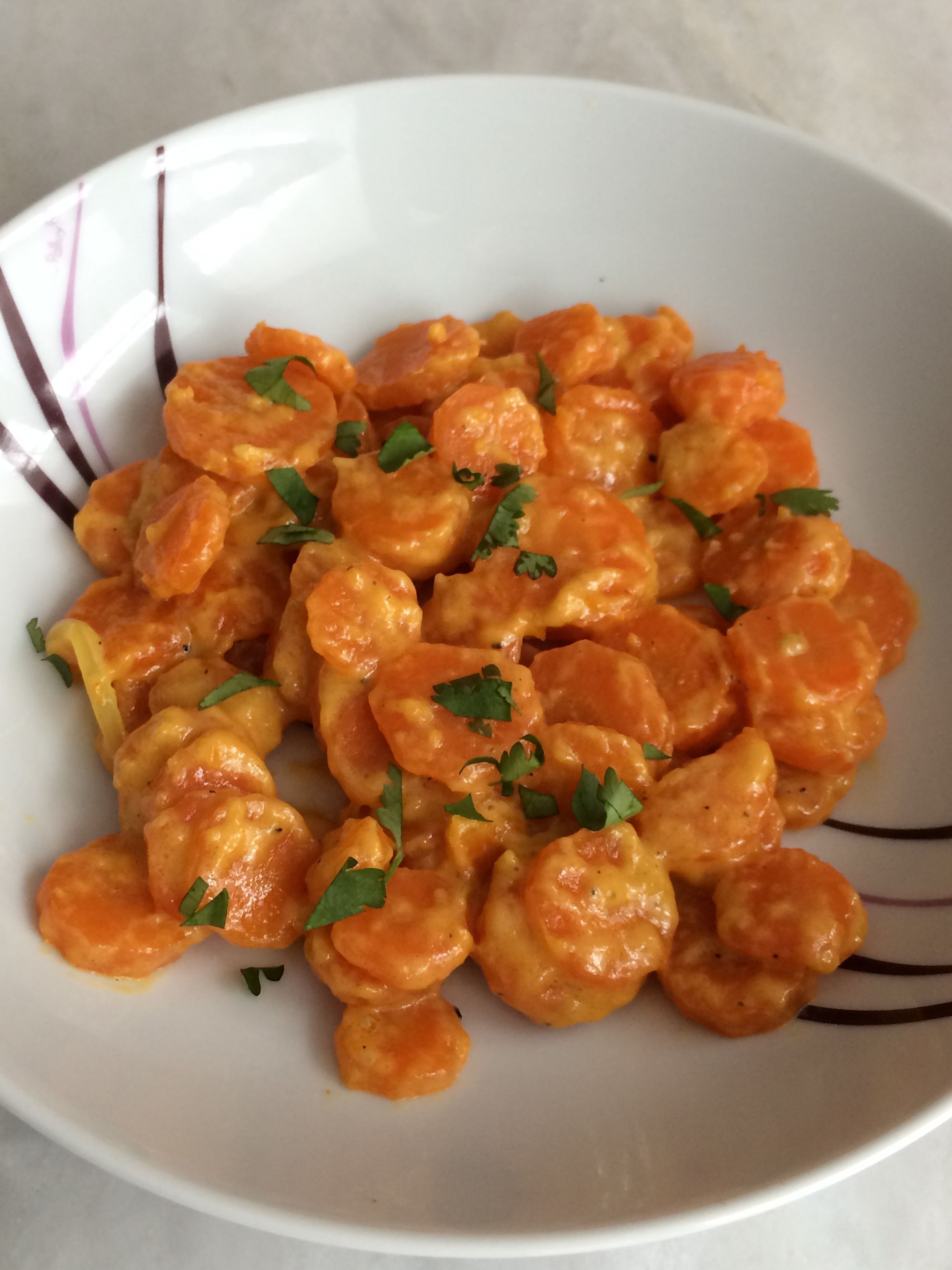 Pour ajouter une note exotique vous pouvez ciselez quelques feuilles de coriandre sur vos carottes. Les carottes vichy sont excellentes et les enfants les aiment fondantes. Moi je les apprécie en accompagnement d’un rôti de porc au thym.