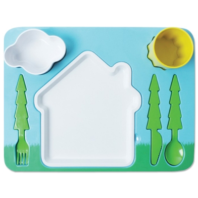 Un plateau repas enfant très sympa avec lequel les enfants pourront s’amuser tout en apprenant à utiliser leur couverts. Chaque ustensile s’insère dans son espace sur le plateau. Et oui, maintenant le repas pourra être à la fois drôle et didactique.