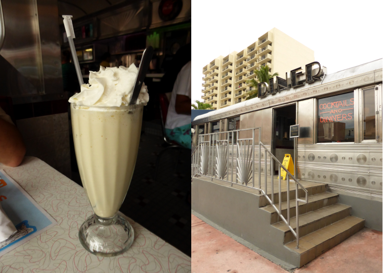 Nous avons choisi l’eleventh street diner situé à Miami Beach. A la carte on retrouve les burgers, les milkshakes, les hotdogs mais aussi des salades.