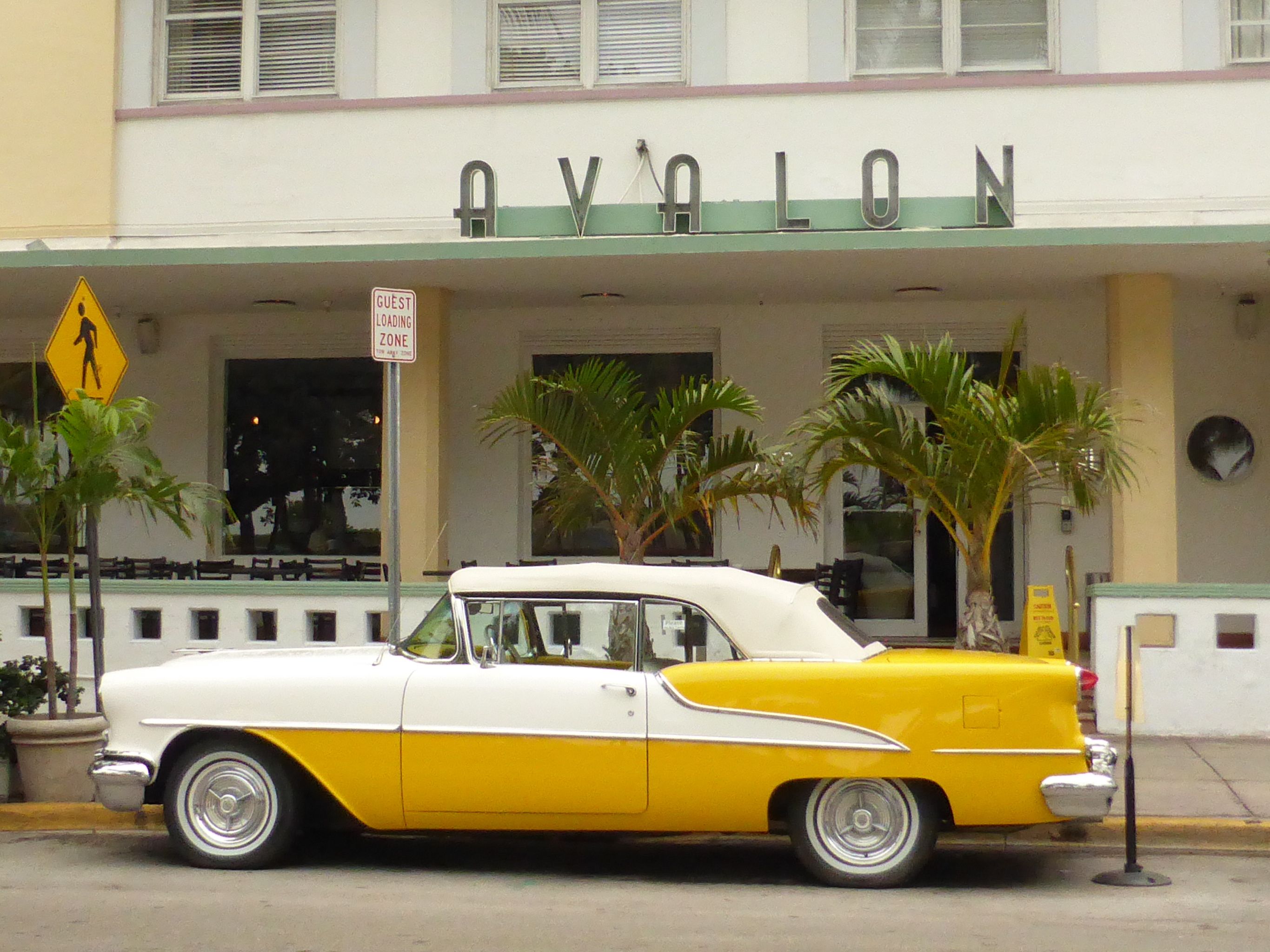 On peut y voir aussi quelques voitures anciennes aux couleurs acidulées comme celle-ci que nous avons découverte devant l’hôtel Avalon.
