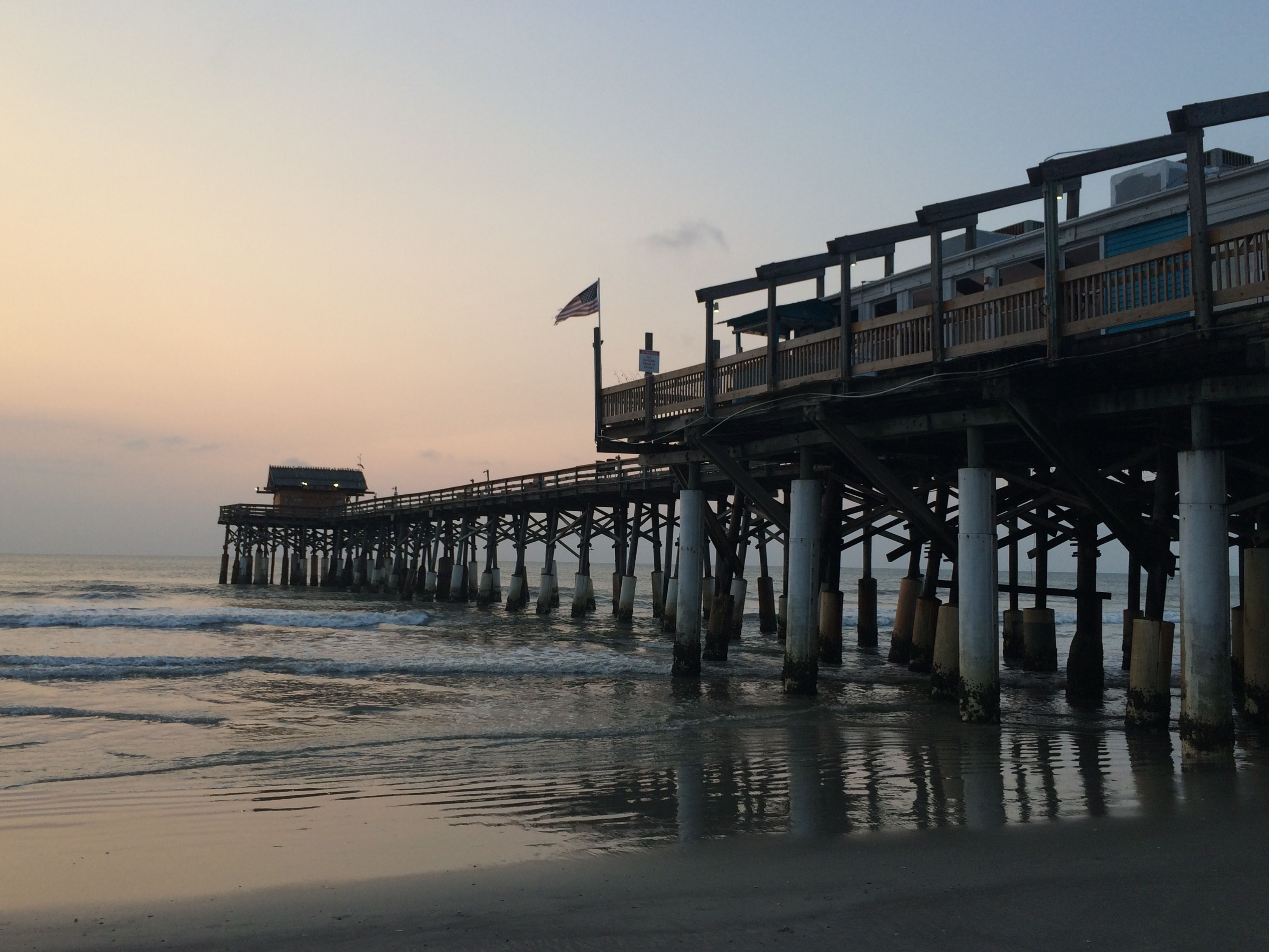Le Cocoa Beach Pier offre une superbe vue sur la plage au moment du levé du soleil.