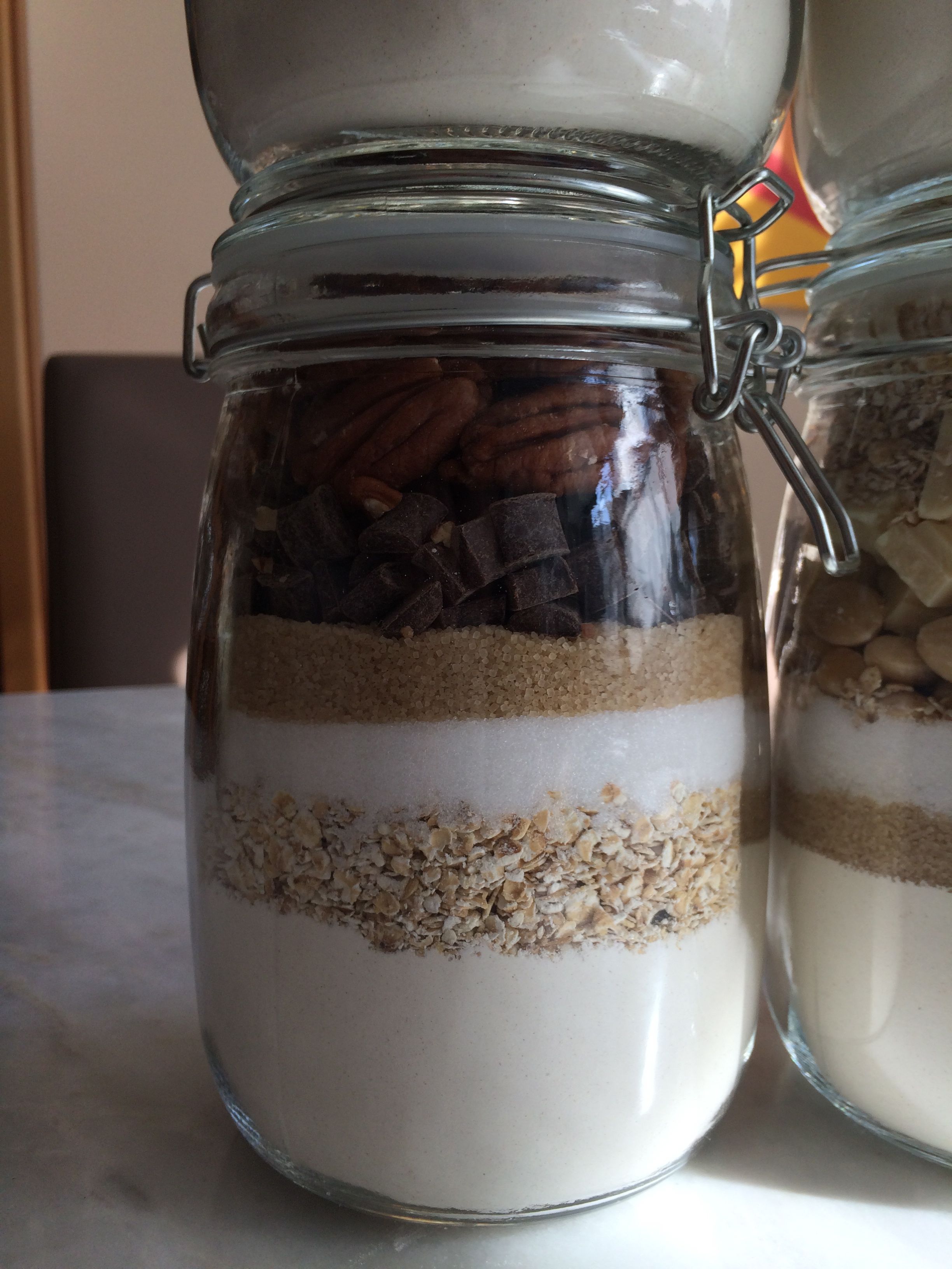 On peut ainsi jouer sur les goûts et les couleurs tout en respectant une règle simple pour que le résultat final soit esthétiquement joli. Verser les ingrédients les plus fins au fond du bocal et terminer par ceux qui sont les plus gros.