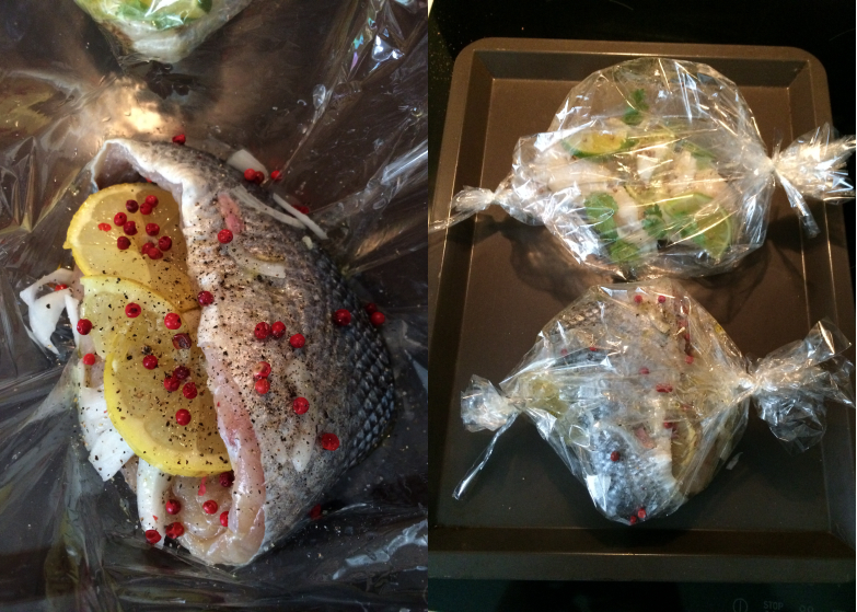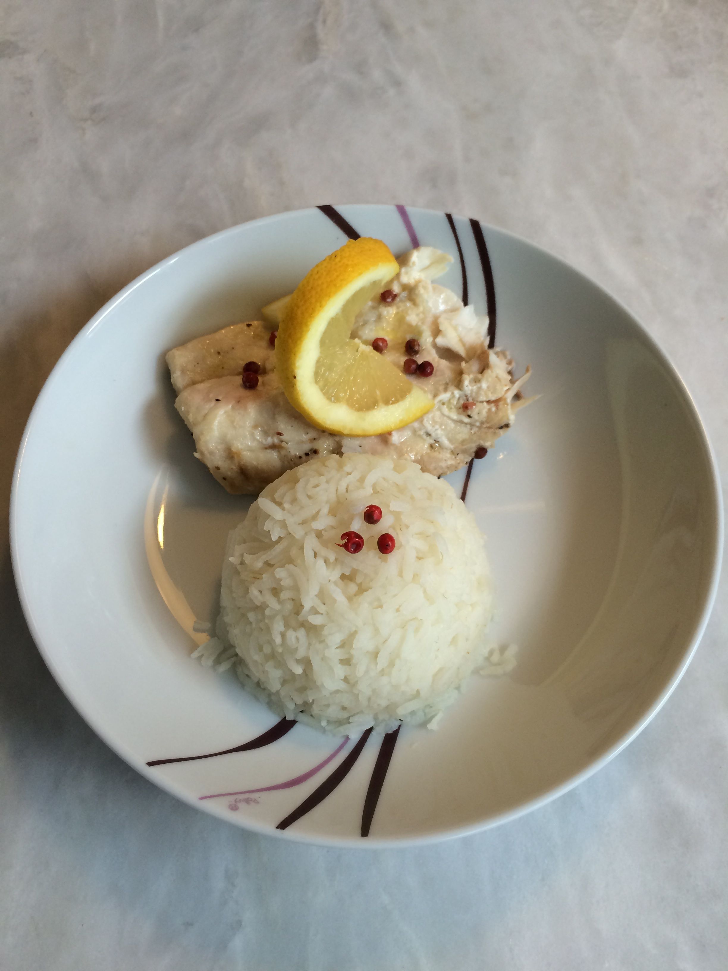 Voici ma recette de loup de mer aux baies roses et citron.